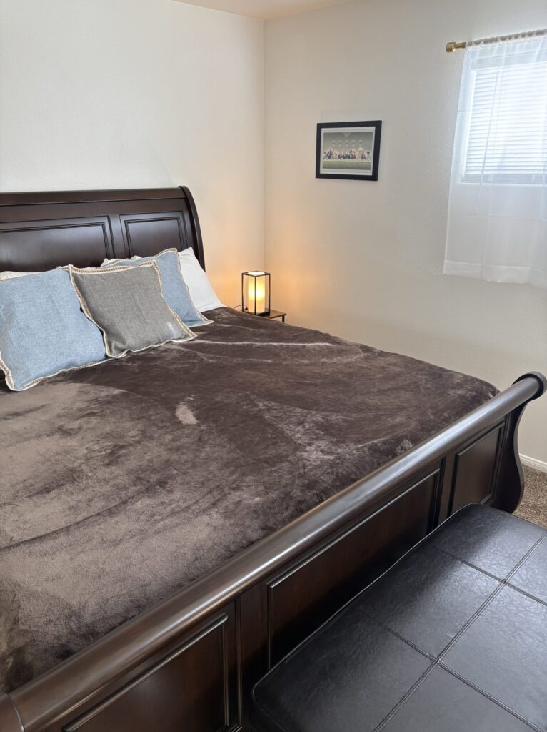 1 smaller bedroom with full pullout bed and detached full bath across the hall