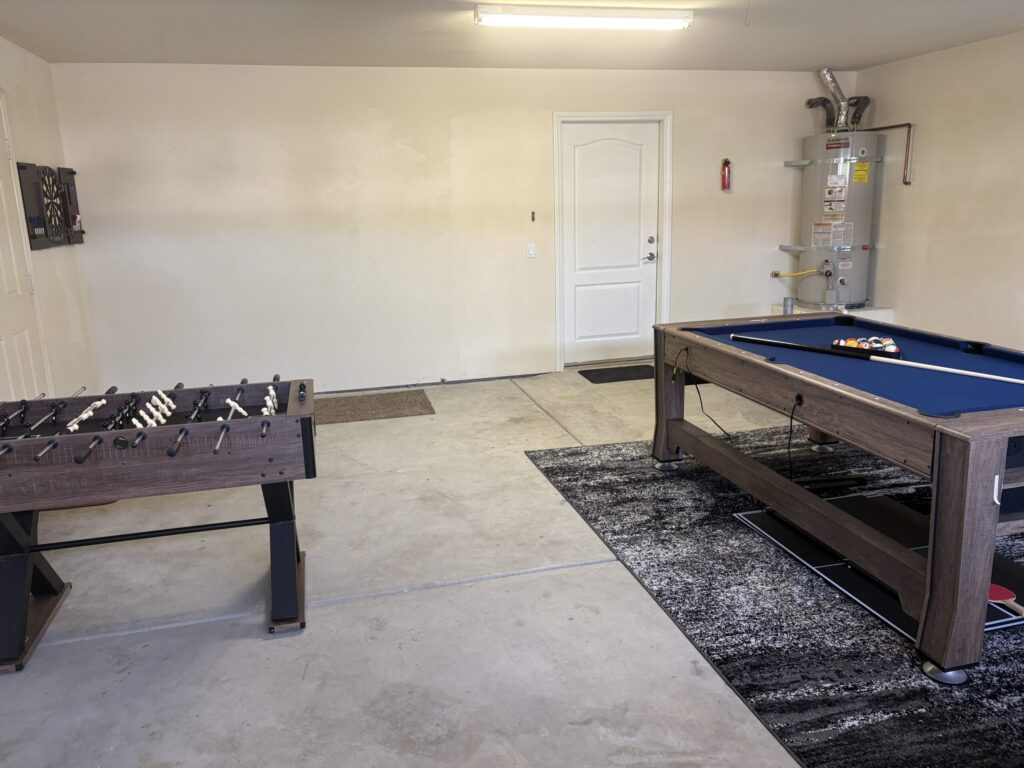 Beautiful sunset views of the mountains. Large hot tub, pool and waterfall. Secluded and private with outdoor privacy walls. Onsite hummingbirds, free Netflix, Hulu, Disney, HBOMAX, Paramount, Peacock and Roku. Game room in garage with Pool Table, Air Hockey, Darts and Foosball. Piped-in gas grill and indoor fireplace. Large king-size bed suites with attached full baths. Dog-run attached to 1 suite and garage. Quiet neighborhood, 10 miles/minutes direct shot to the airport, 30 minutes to Coachella, 20 minutes to downtown Palm Springs. Direct access to owner as needed via phone, email or text.